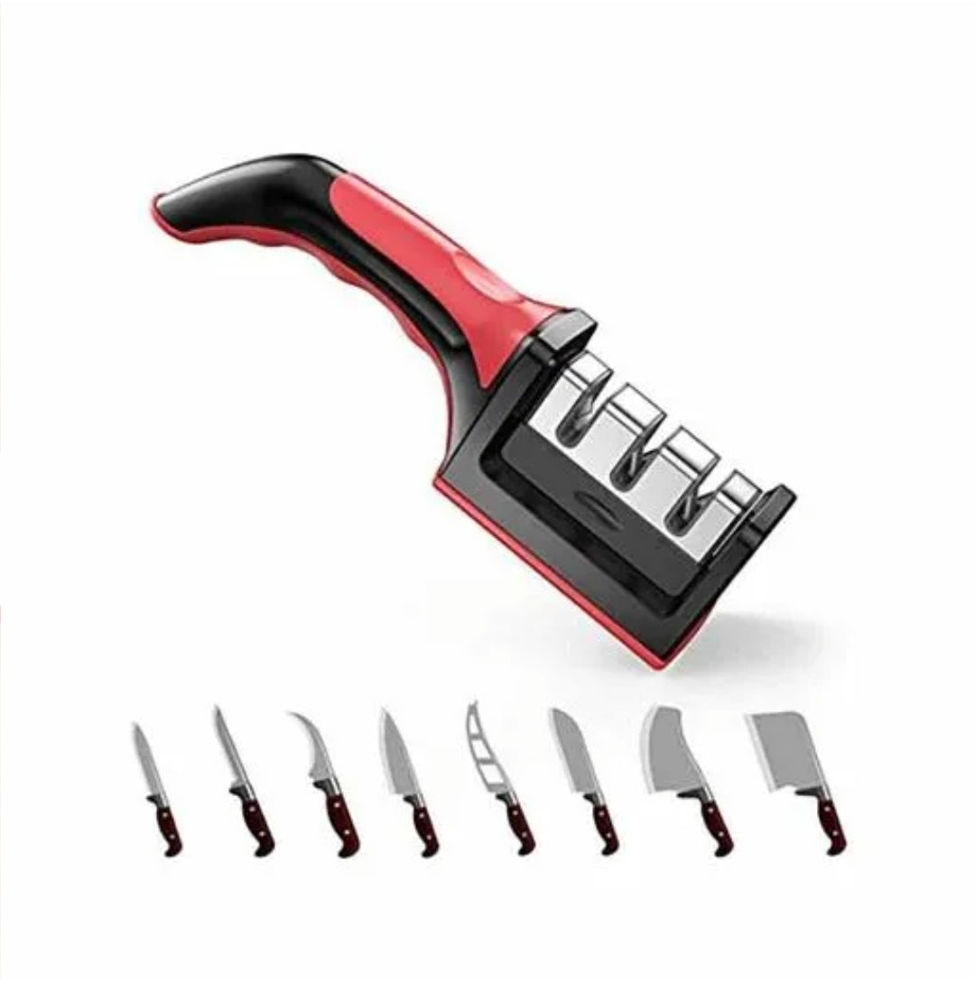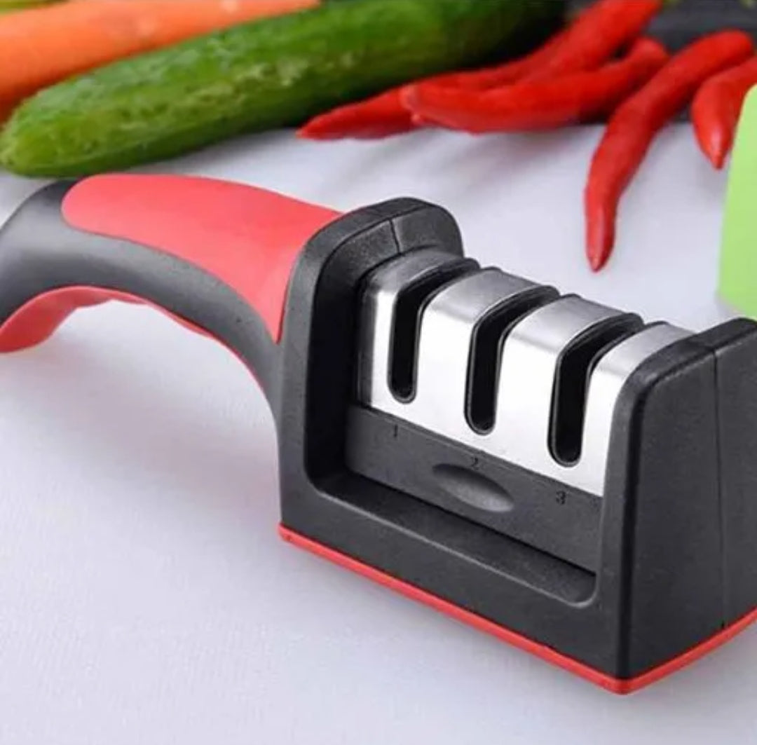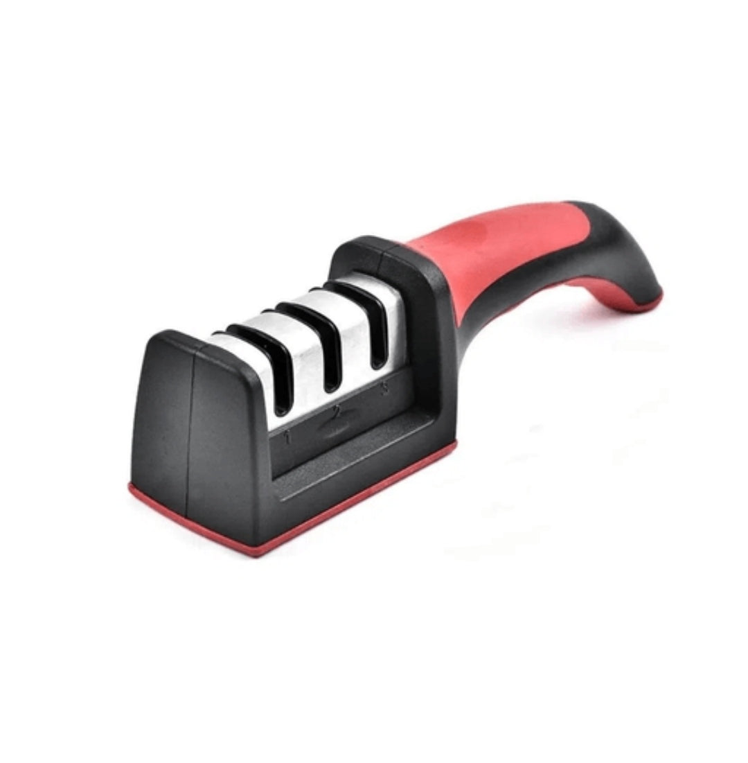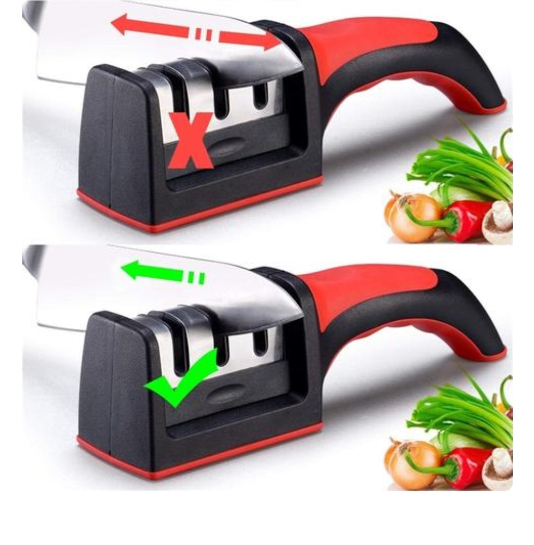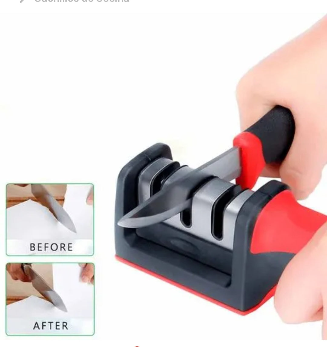 La solución más práctica para la piedra de afilar que se presta para cortaduras en las manos por su difícil manipulación, con el afilador de 3 etapas tendrás tus cuchillos afilados en cuestión de segundos.