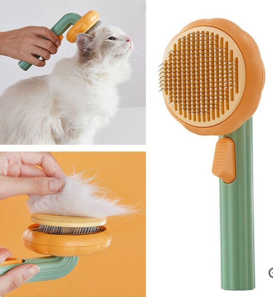 Cuando hayas terminado de cepillar a tu mascota, simplemente haz clic en el botón y el cabello suelto se quitará del cepillo, por lo que puedes prepararte para tu próximo uso, haciendo que sea muy fácil quitar todo el cabello del cepillo, ahorrando tiempo y esfuerzo.