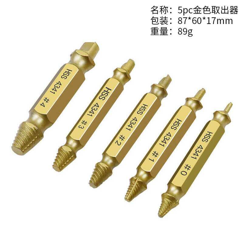 Brocas de varios tamaños: El set incluye brocas extractoras de diferentes tamaños para adaptarse a una amplia gama de tornillos o pernos. Estas brocas están diseñadas para perforar un pequeño agujero en el centro del tornillo o perno dañado, lo que permite que la broca se "agarre" y lo extraiga.